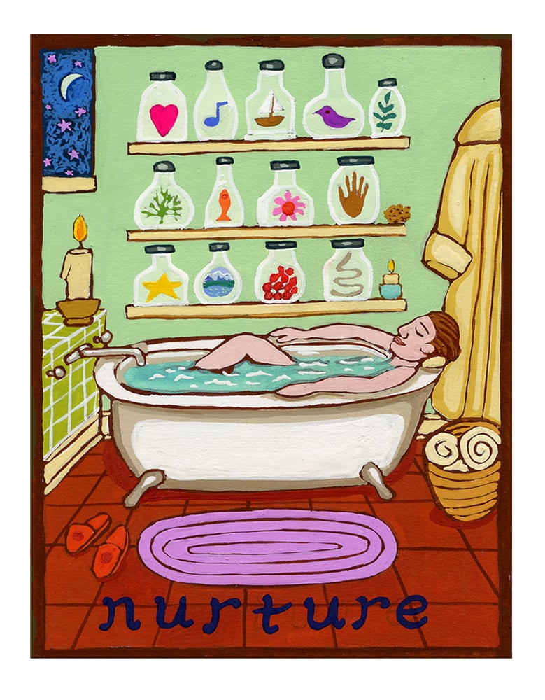 This is an archival quality giclee print mounted to a handmade poplar wood plaque. It measures 4.25" x 5.5" x 3/4" and has a D-ring hanger on the back. It comes also with a removable vintage wooden peg that fits in the back as an easel to stand the plaque on a desk or shelf. Over 40 designs available.