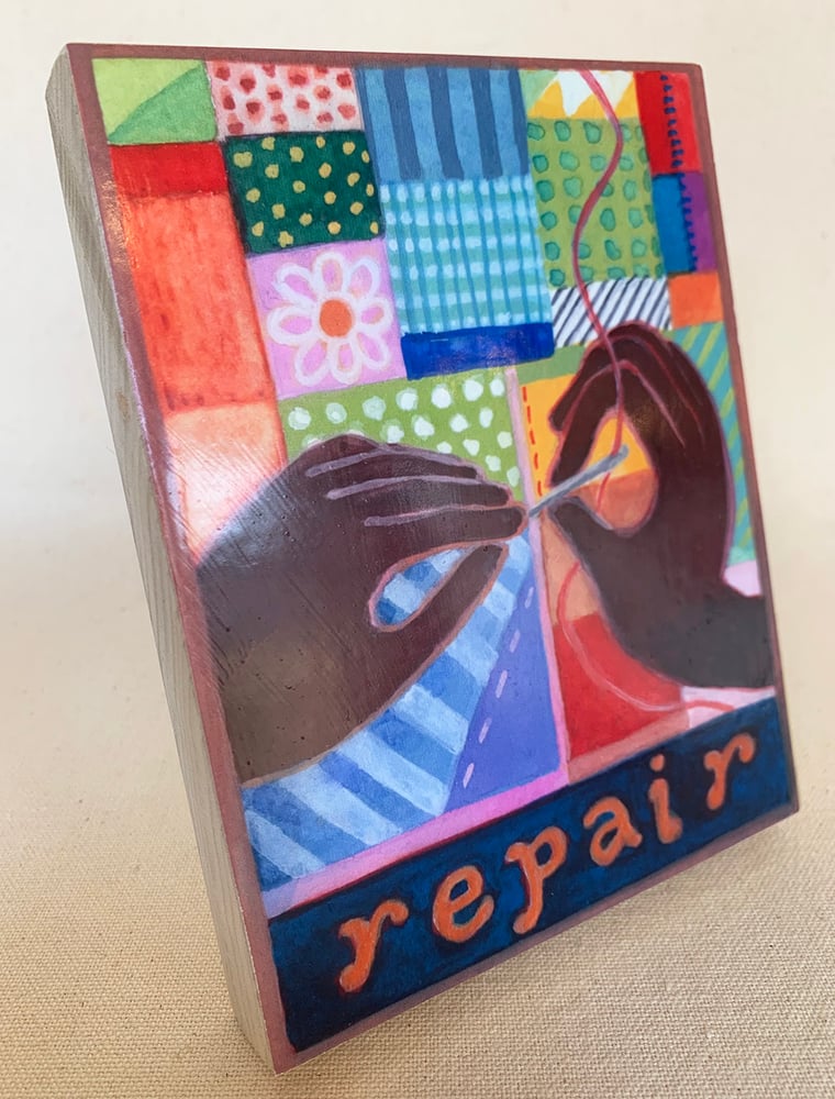This is an archival quality print mounted to a handmade poplar wood plaque. It measures 4.25" x 5.5" x 3/4" and has a D-ring hanger on the back. It comes also with a removable wooden peg that fits in the back as an easel to stand the plaque on a desk or shelf. Over 40 designs available. *(Small size 2.5" x 3.25" x 3/4" available in a separate listing for $38)