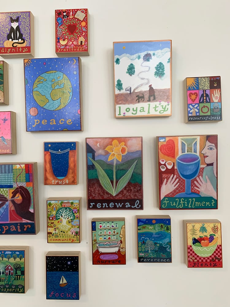 This is an archival quality print mounted to a handmade poplar wood plaque. It measures 2.5" x 3.25" x 3/4" and has an angled hole on the back that can fit over a nail on the wall or hold the wooden peg that comes with it to stand on a shelf or desk. Over 40 designs available. *(Regular size 4.25" x 5.5" x 3/4" available in a separate listing for $52)